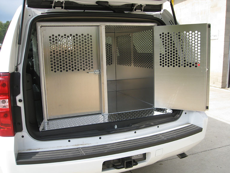 Weldexperts designs and manufactures many models of Canine units to suit most vehicle types. All K9 units are designed to integrate with existing chassis/vehicle interior heating, air conditioning ventilation systems, door openings, electronics, visibility and lighting. Our designs contour closely to the existing vehicle headliner, side panels, floor drop and are sloped to match the front seat angle. We provide maximum security and ventilation for the canine and safety of occupant. All our kennels are removable and transferable to new chassis/vehicles.
